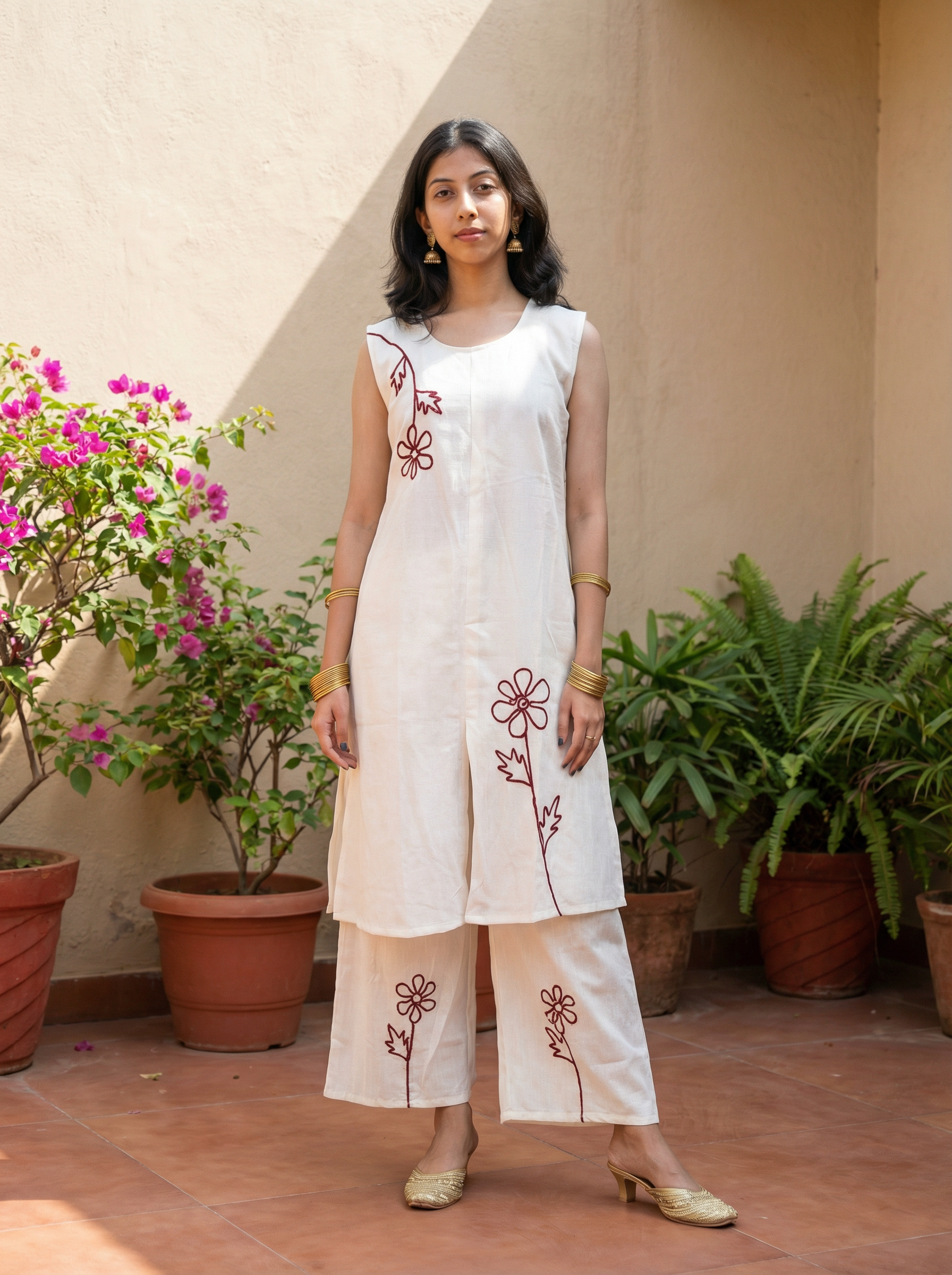 BEAUTIFUL MUL COTTON KAFTAN WITH DHOTI AND NECK WORK