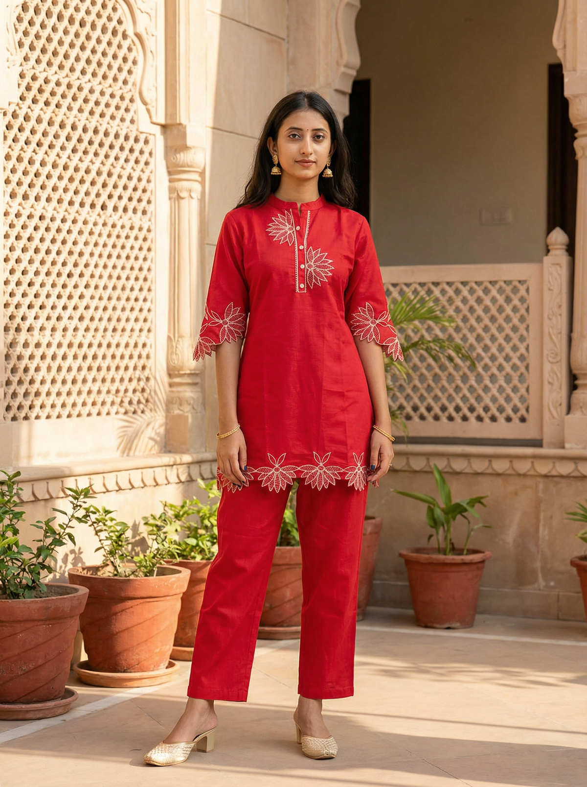 VATICAN SILK HAPPY PINK CORD SET WITH UNIQUE EMBROIDERY DESIGNS