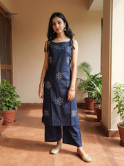 BEAUTIFUL NAVY BLUE SPGHETTI STYLE CORD SET WHIT MIRROR WORK NECK AND EMBROIDERY - M